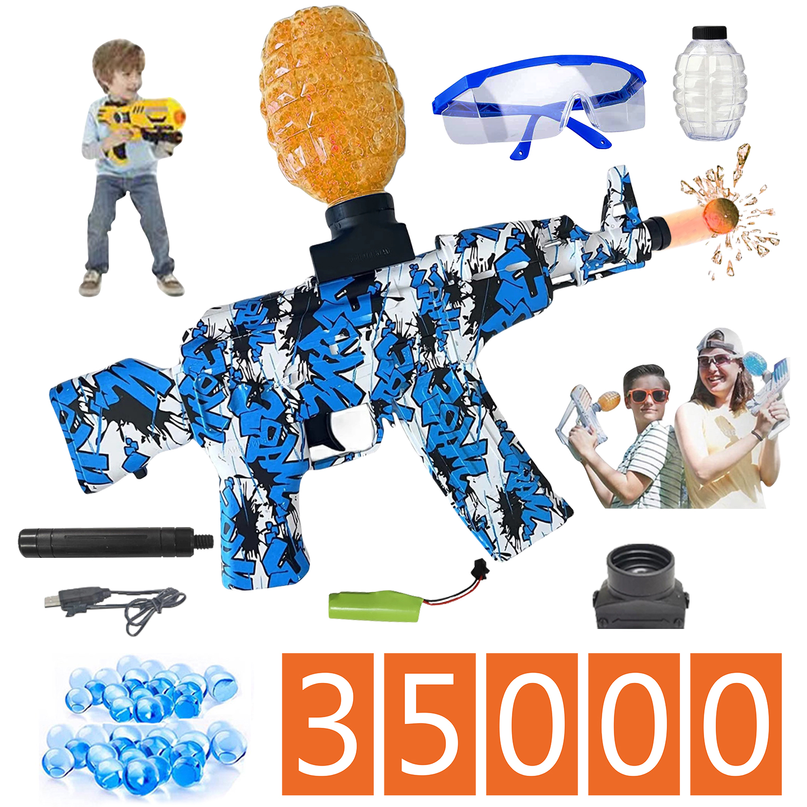 Kids Toys For 9 Yr Old Boys And Girls Electric With Gel Ball Blaster Toys With 35000 Water Beads For Outdoor Activities Shooting Team Game Akm 47 Blue Walmart Com