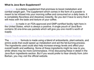 Web Java Burn is a weight loss supplement that users can take with their coffee. Web Java Burn Coffee is the first deep sleep anti-aging and nocturnal metabolism formula. Web Java Burn is a dietary product that claims to increase metabolism and.