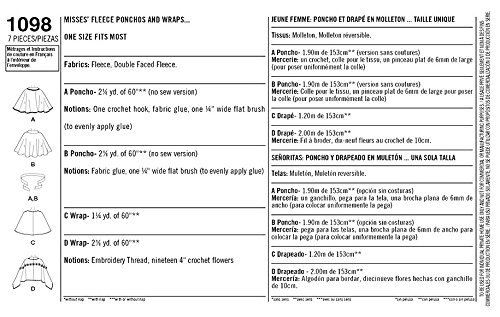 Amazon Com Simplicity 1098 Misses Fleece Ponchos Wraps Sewing Template Size Os One Size Arts Crafts Sewing
