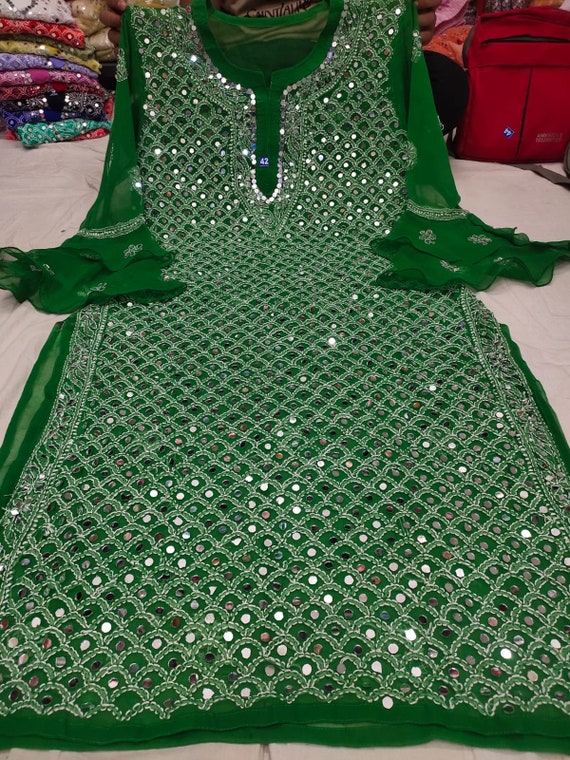Indian Lucknowi Georgette Chikankari Mirror Work Kurti With Etsy